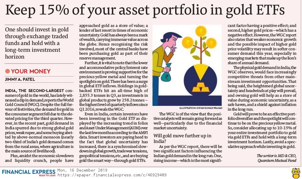 Keep 15% Of Your Asset Portfolio In Gold ETFs